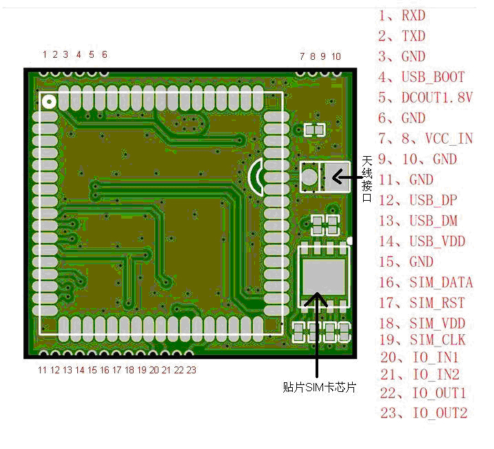 4.? 自帶貼片SIM卡,同時也支持用戶板上設計SIM卡座;