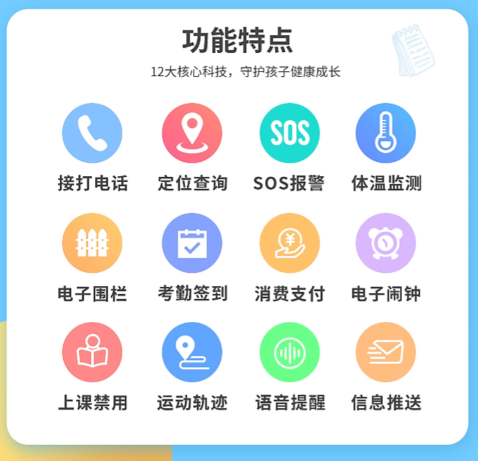 智能電子學(xué)生卡,也叫智能電子學(xué)生證。自從智能手機(jī)普及后,太多孩子沉迷游戲,導(dǎo)致學(xué)業(yè)荒廢,過早近視,暴力傾向,總之手機(jī)對孩子的身心健康會造成很大的到毒害。智能電子學(xué)生卡,它相當(dāng)于學(xué)生的簡易版“手機(jī)”,它具有手機(jī)的基本功能,但它不同于手機(jī),只具有手機(jī)的基本通話功能,沒有游戲與其它的娛樂功能。通常情況下,它除了接打電話外,具有定位功能,家長可通過手機(jī)端APP或小程序來查看孩子的位置以及行駛軌跡,具有SOS報警功能,孩子遇到意外安全情況時,可長按SOS報警鍵,可進(jìn)行報警。除了這些功能外,它還有其它的一些功能。